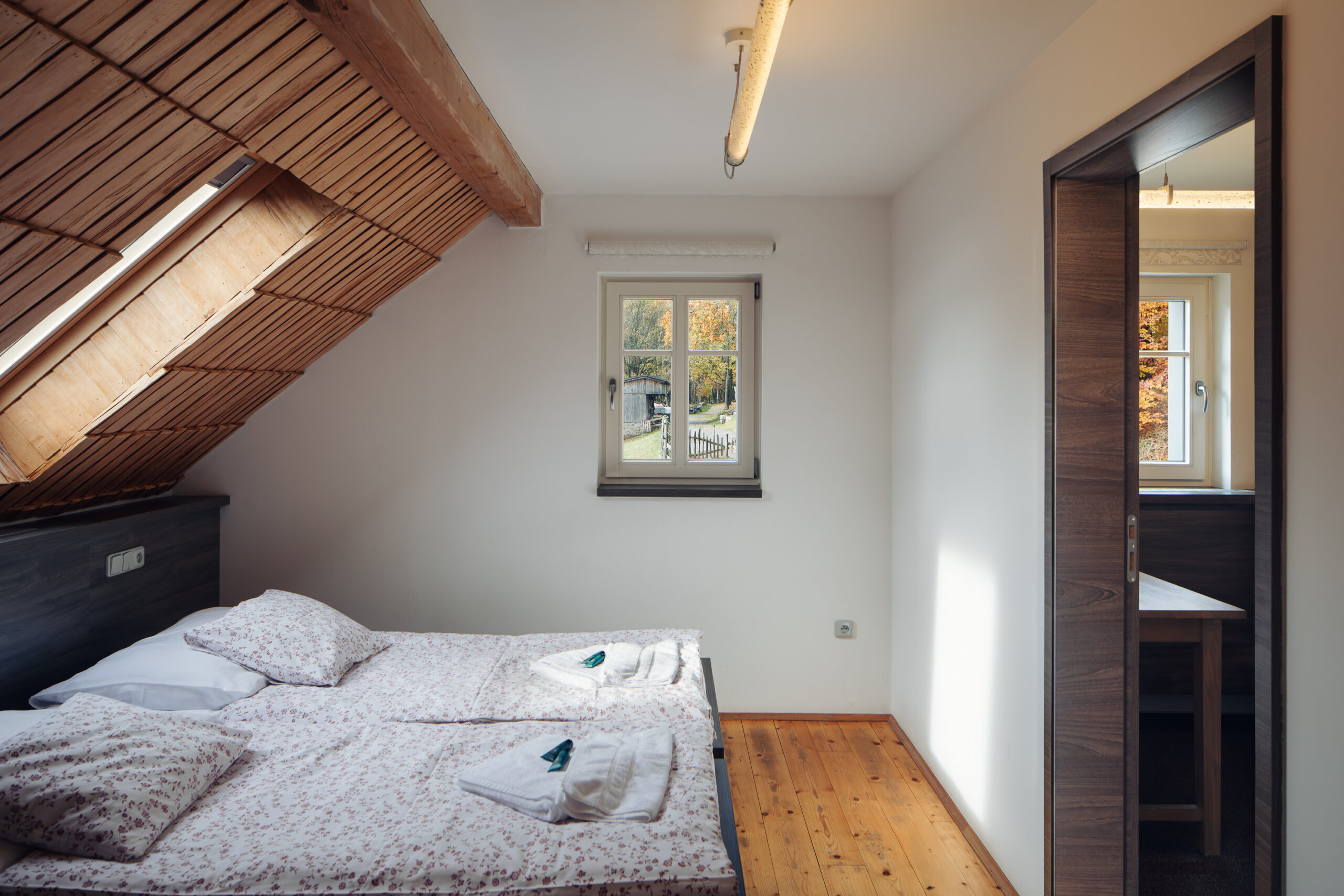 Jsou ideální pro páry, přátele i rodiny s dětmi. Říká se, že máme hřiště s nejhezčím výhledem do krajiny – a my s tím tiše souhlasíme. Když venku zaprší, děti najdou zábavu v našem vnitřním koutku, dospělí zase klid ve společenské místnosti s knihami. Ráno vás u nás čeká poctivá snídaně – v létě s čerstvou zeleninou ze skleníku, po celý rok s koláči a dezerty od naší cukrářky Nataši. A pokud toužíte po relaxaci, můžete si ji dopřát u nás v sauně.